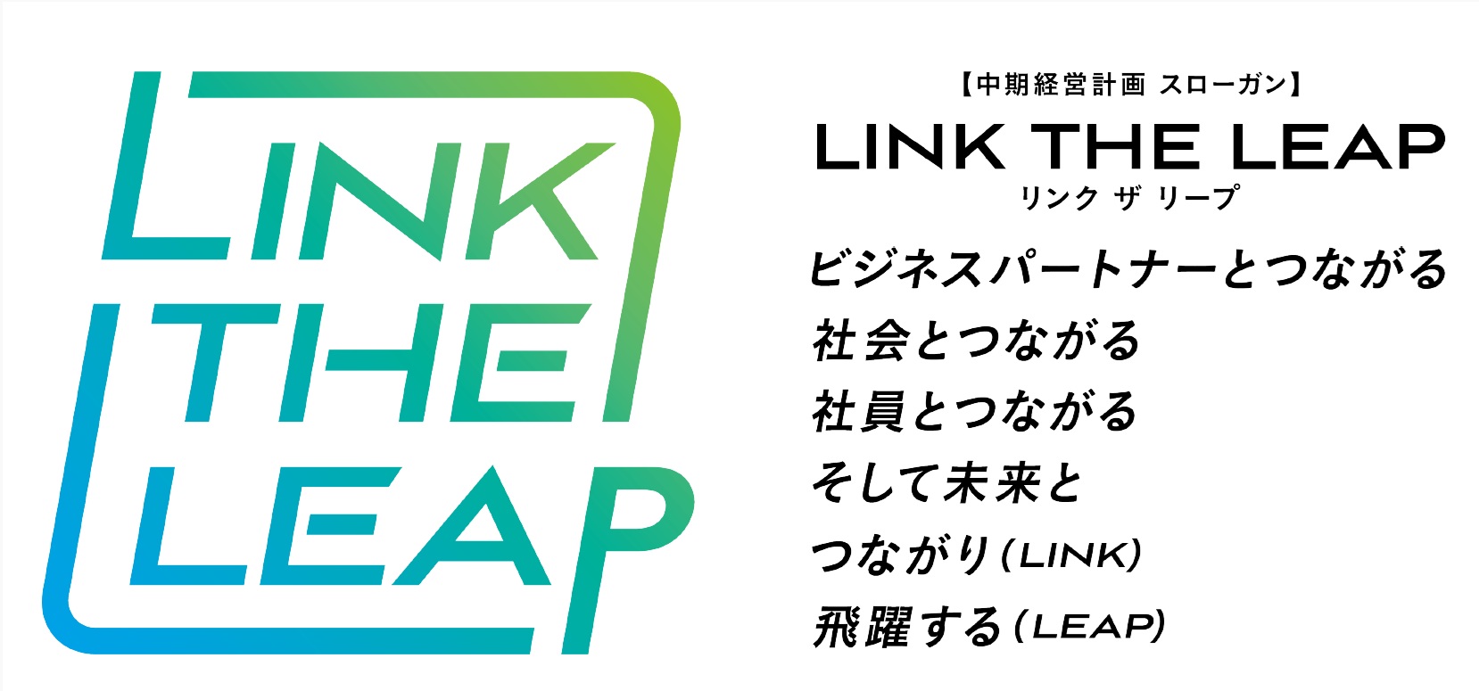 2025年12月に策定した中期経営計画は「LINK THE LEAP ~ビジネスパートナーとつながる、社会とつながる、社員とつながる、そして未来とつながり飛躍する~」をスローガンに掲げ、①多様なビジネスパートナーとのつながりを通じて事業を強化する、②環境事業を拡大し社会とのつながりを深める、③社員と会社が一体となり、ともに成長する。そして、未来へと飛躍していくことを目指すものです。